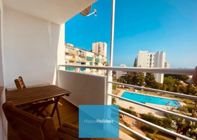 HH Bonanza Balcony Seaview tiene orienzación sur. Situado en un residencial cuidado y tranquilo, rodeado de zonas verdes y una bonita piscina comunitaria, es perfecto para relajarse después de un día de playa o turismo. La ubicación es ideal: a solo 600 metros de la playa y a menos de 1 km de Puerto Marina, con restaurantes, tiendas y ocio a un agradable paseo.