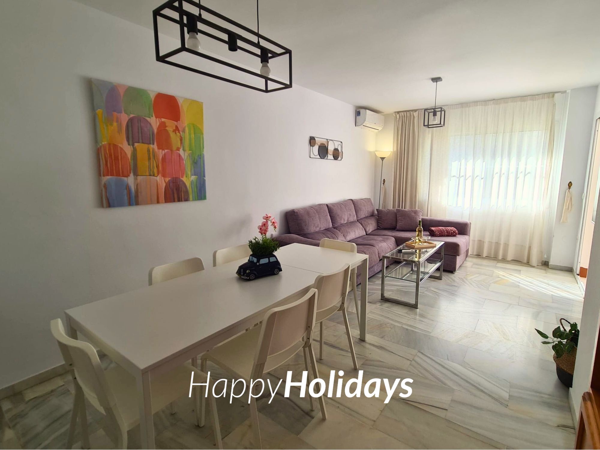 A tan solo 2 minutos andando de la playa, parada de bus a 50 metros y posible de ir andando a Puerto Marina por el precioso paseo marítimo que dispone Benalmádena Costa.