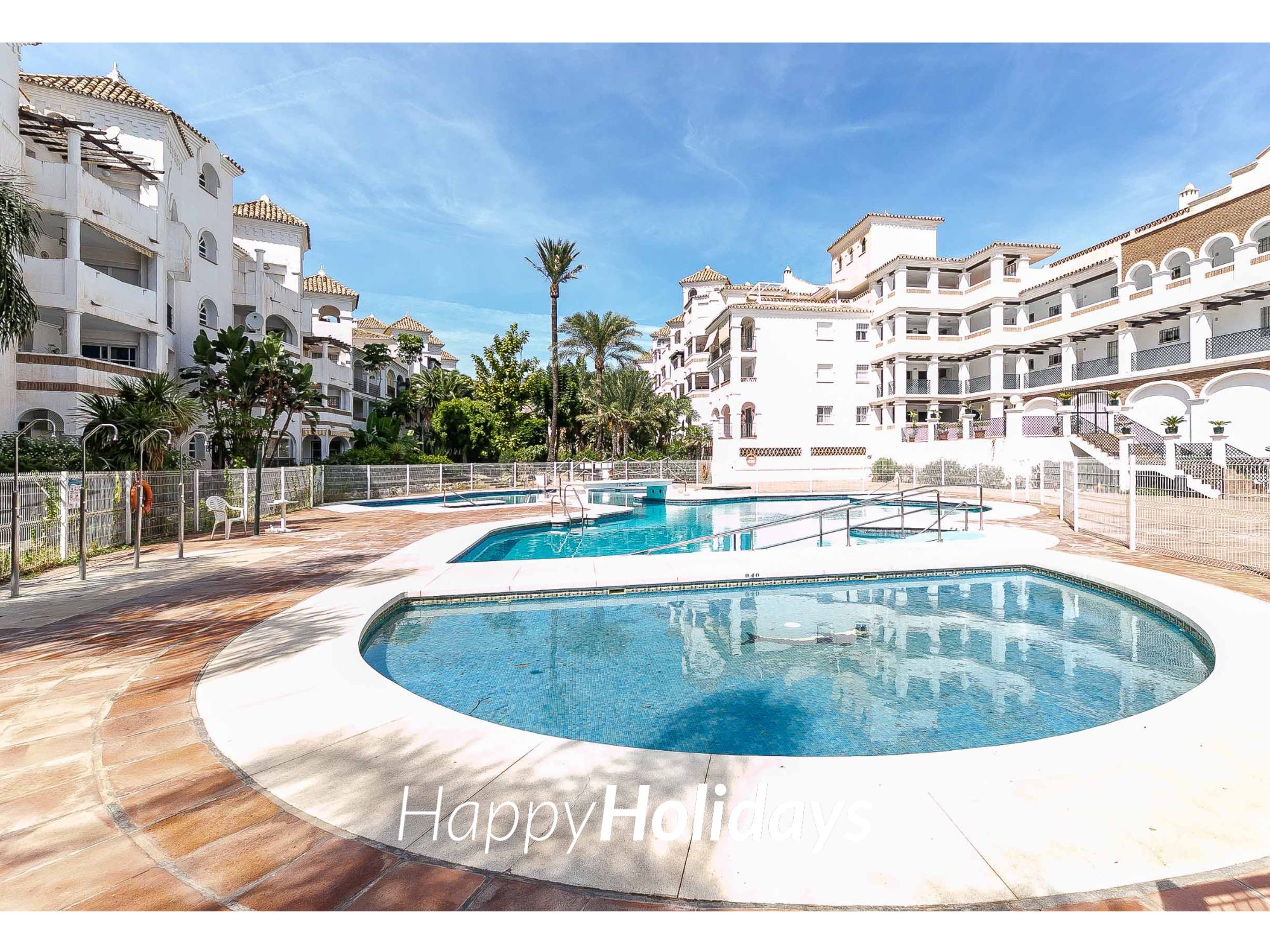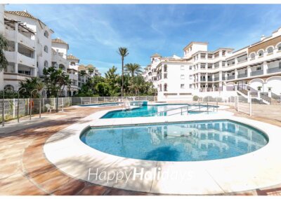 HH Palmeras dispone plaza de garaje interior y unas bonitas zonas verdes y varias piscinas. Una piscina abierta durante todo el año para el disfrute de nuestros huéspedes.