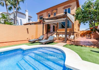 Los exteriores ofrecen diferentes ambientes: zona de tumbonas en la piscina privada, comedor junto a la barbacoa y zona chill out para tomar un café o disfrutar de los 350 días de sol que ofrece la costa del sol.